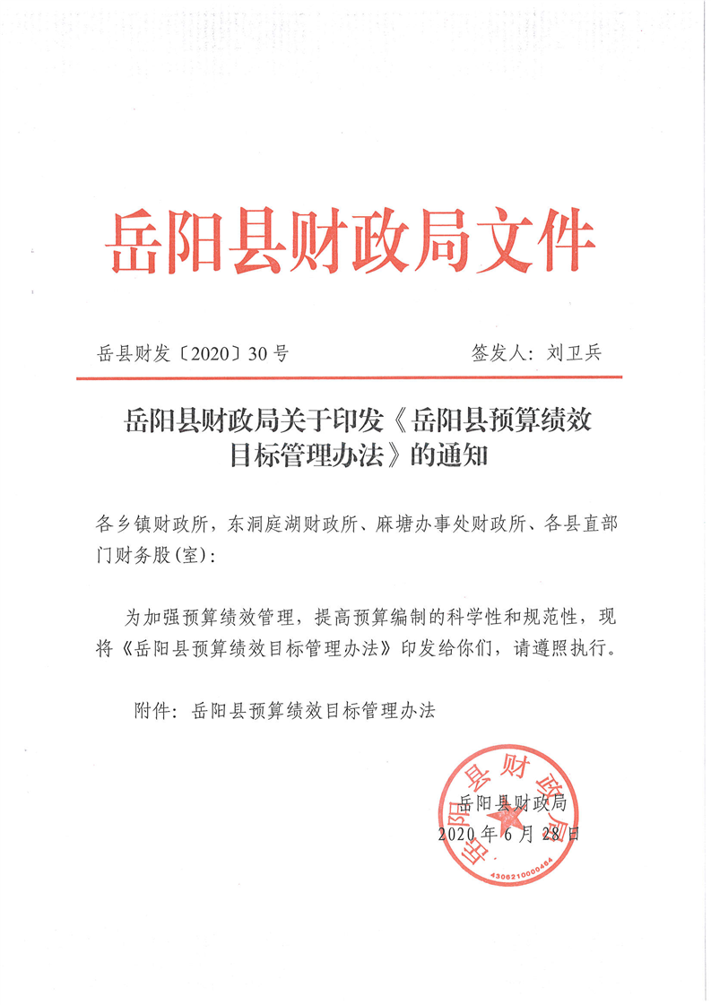 岳陽縣財(cái)政局關(guān)于印發(fā)《岳陽縣預(yù)算績(jī)效目標(biāo)管理辦法》的通知 (圖)