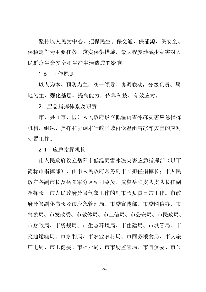 岳陽市低溫雨雪冰凍災害應急預案(試行))
