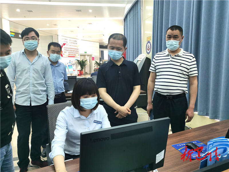在縣政務(wù)服務(wù)中心,童勛海詳細(xì)了解窗口工作情況,查看辦事大廳環(huán)境,并跟隨一名市民體驗(yàn)了企業(yè)開辦全流程。
