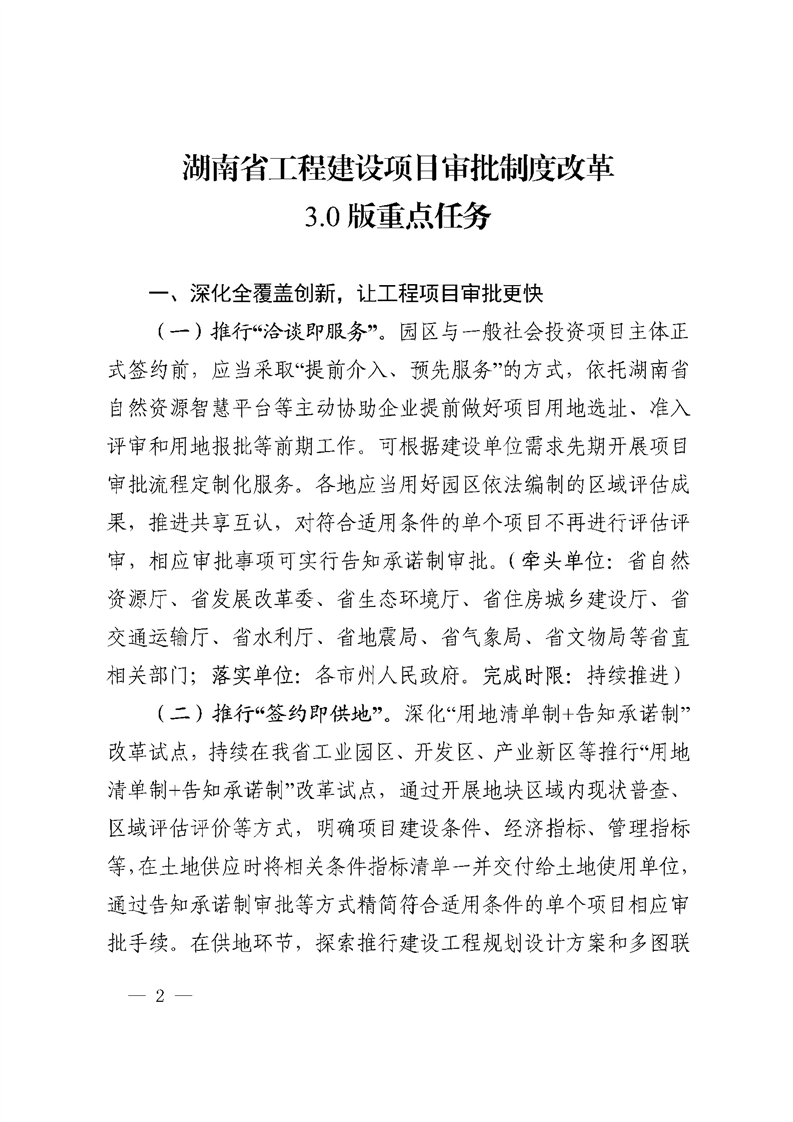 湖南省工程建設(shè)項(xiàng)目審批制度改革3.0版重點(diǎn)任務(wù)