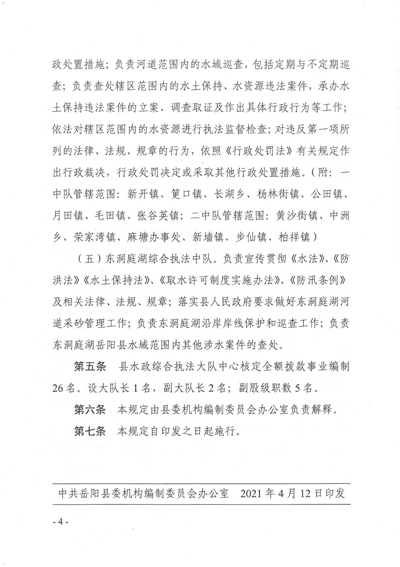 岳陽(yáng)縣水政綜合執(zhí)法大隊(duì)職能配置、內(nèi)設(shè)機(jī)構(gòu)和人員編制規(guī)定