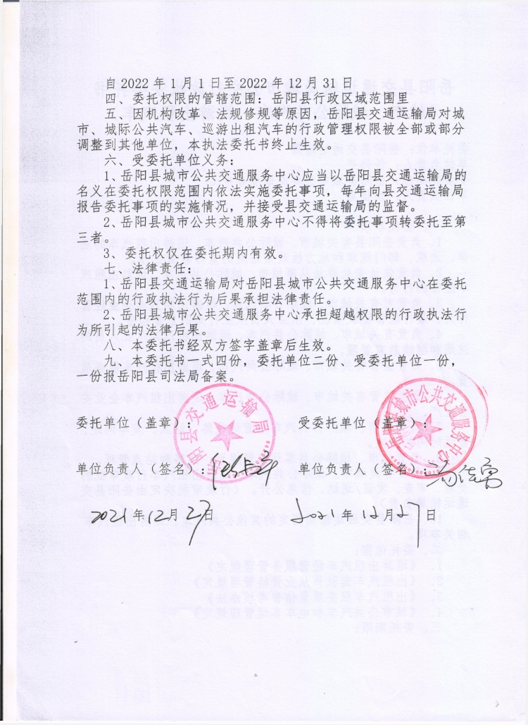 岳陽(yáng)縣交通運(yùn)輸局城市公交行政執(zhí)法委托書(shū)(2022年)