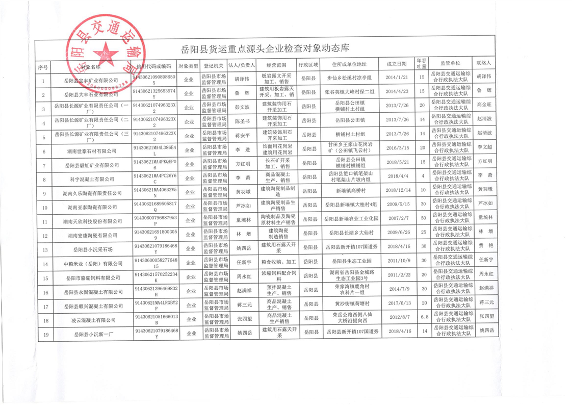 岳陽縣貨運(yùn)源頭企業(yè)檢查對象動(dòng)態(tài)庫