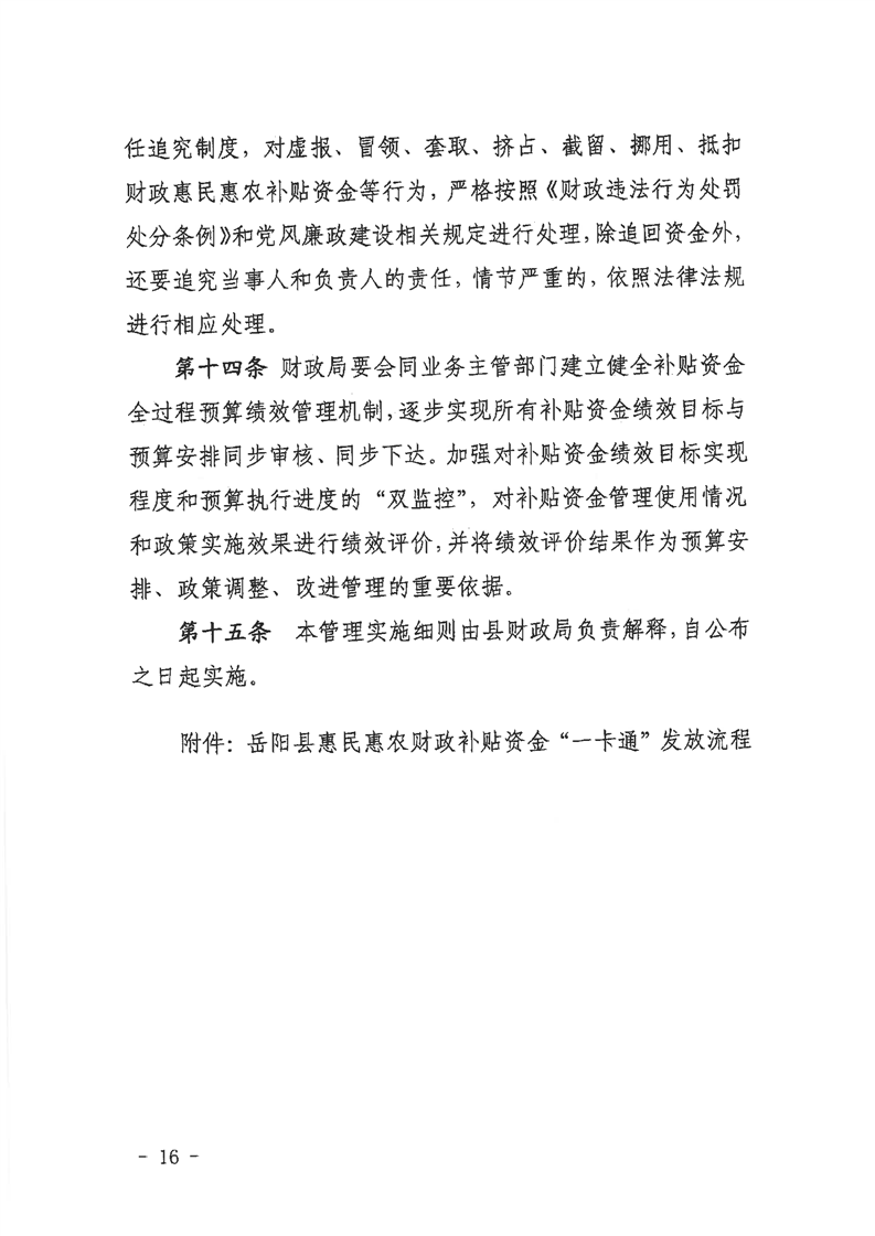 岳陽縣惠民惠農(nóng)財(cái)政補(bǔ)貼資金“一卡通”發(fā)放管理實(shí)施細(xì)則