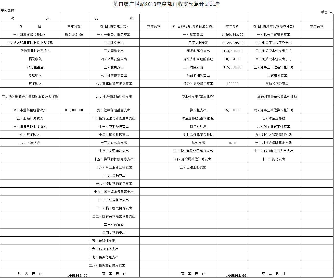 筻口鎮(zhèn)廣播站2018年度部門收支預(yù)算計劃總表